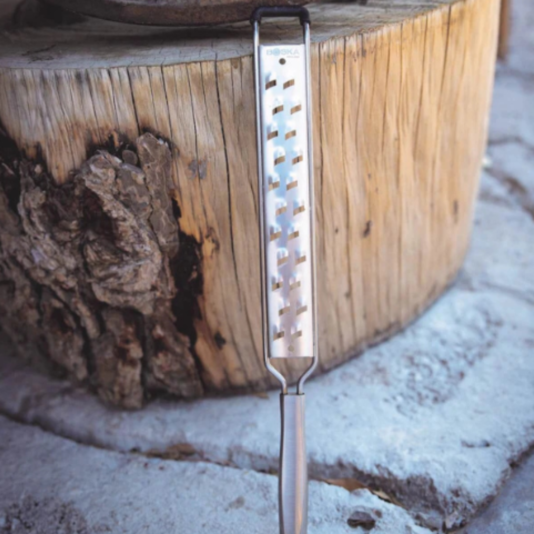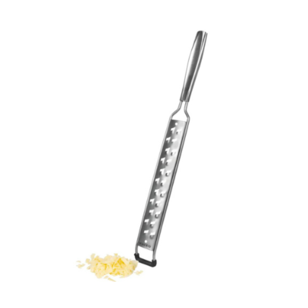 Þetta rifjárn sker hárfínt ostinn, grænmeti, hvítlauk ofl. Gripið er þægilegt og það er gúmmí á enda járnsins sem þú getur notað til að styðja við flatt yfirborð.