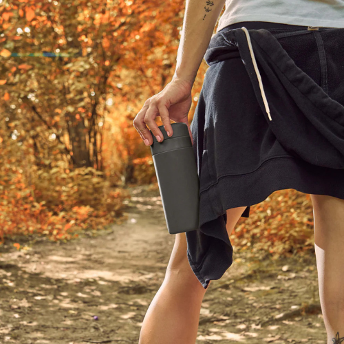 Þessi frábæra nýjung frá Porter sem heldur heitu og köldu er hannaður með þægindi á ferðinni í huga. Brúsinn er úr ryðfríu stáli með keramikhúðun sem tryggir að vökvi komist aldrei í snertingu við málm og skilur ekki eftir málmbragð. Tvöfalldur, lofftæmdur kjarni heldur drykkjum heitum í allt að 12 klst. og köldu í 24 klst. Brúsinn er svo klæddur silkimjúku silikoni sem veitir gott og þækilegt grip. Meðfylgjandi er lok sem er 100% lekhelt en hægt að kaupa lok sem er opnanlegt fyrir betra aðgengi og einnig með haldi sem er algjör snilld fyrir fólk á ferðinni.