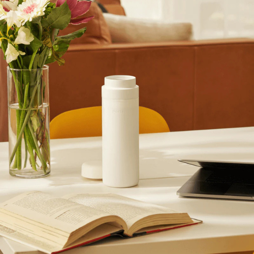 Þessi frábæra nýjung frá Porter sem heldur heitu og köldu er hannaður með þægindi á ferðinni í huga. Brúsinn er úr ryðfríu stáli með keramikhúðun sem tryggir að vökvi komist aldrei í snertingu við málm og skilur ekki eftir málmbragð. Tvöfalldur, lofftæmdur kjarni heldur drykkjum heitum í allt að 12 klst. og köldu í 24 klst. Brúsinn er svo klæddur silkimjúku silikoni sem veitir gott og þækilegt grip. Meðfylgjandi er lok sem er 100% lekhelt en hægt að kaupa lok sem er opnanlegt fyrir betra aðgengi og einnig með haldi sem er algjör snilld fyrir fólk á ferðinni.