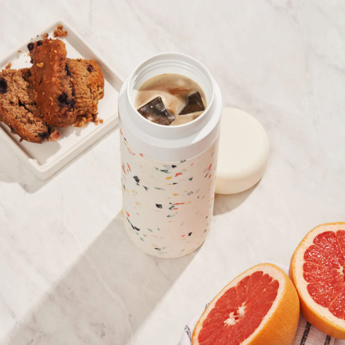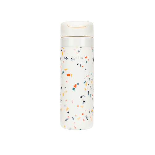 Þessi frábæra nýjung frá Porter sem heldur heitu og köldu er hannaður með þægindi á ferðinni í huga. Brúsinn er úr ryðfríu stáli með keramikhúðun sem tryggir að vökvi komist aldrei í snertingu við málm og skilur ekki eftir málmbragð. Tvöfalldur, lofftæmdur kjarni heldur drykkjum heitum í allt að 12 klst. og köldu í 24 klst. Brúsinn er svo klæddur silkimjúku silikoni sem veitir gott og þækilegt grip. Meðfylgjandi er lok sem er 100% lekhelt en hægt að kaupa lok sem er opnanlegt fyrir betra aðgengi og einnig með haldi sem er algjör snilld fyrir fólk á ferðinni.
