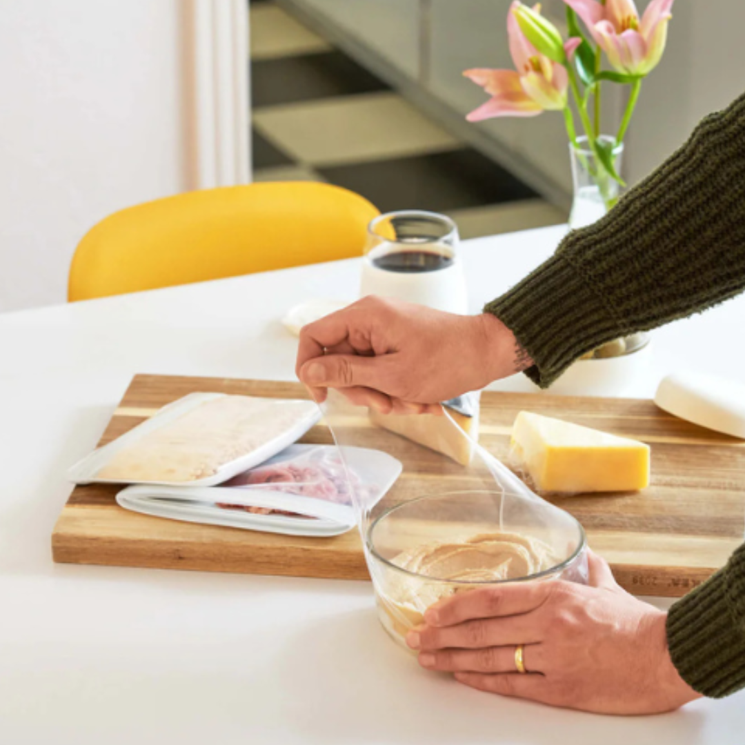 Porter fjölnota plastfilmur sem hægt er að nota í stað einnota plastfilmu, álpappírs og einnota poka. 3 filmur í pakka í þremur stærðum.