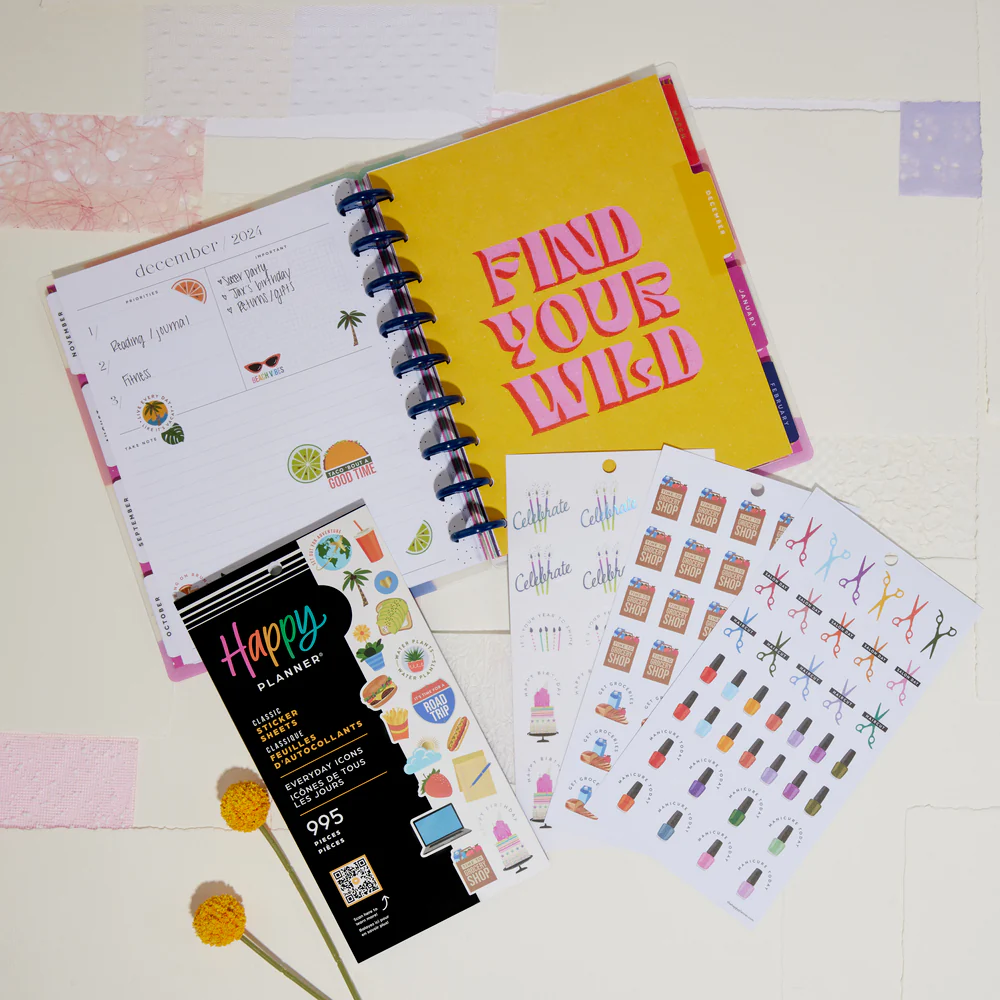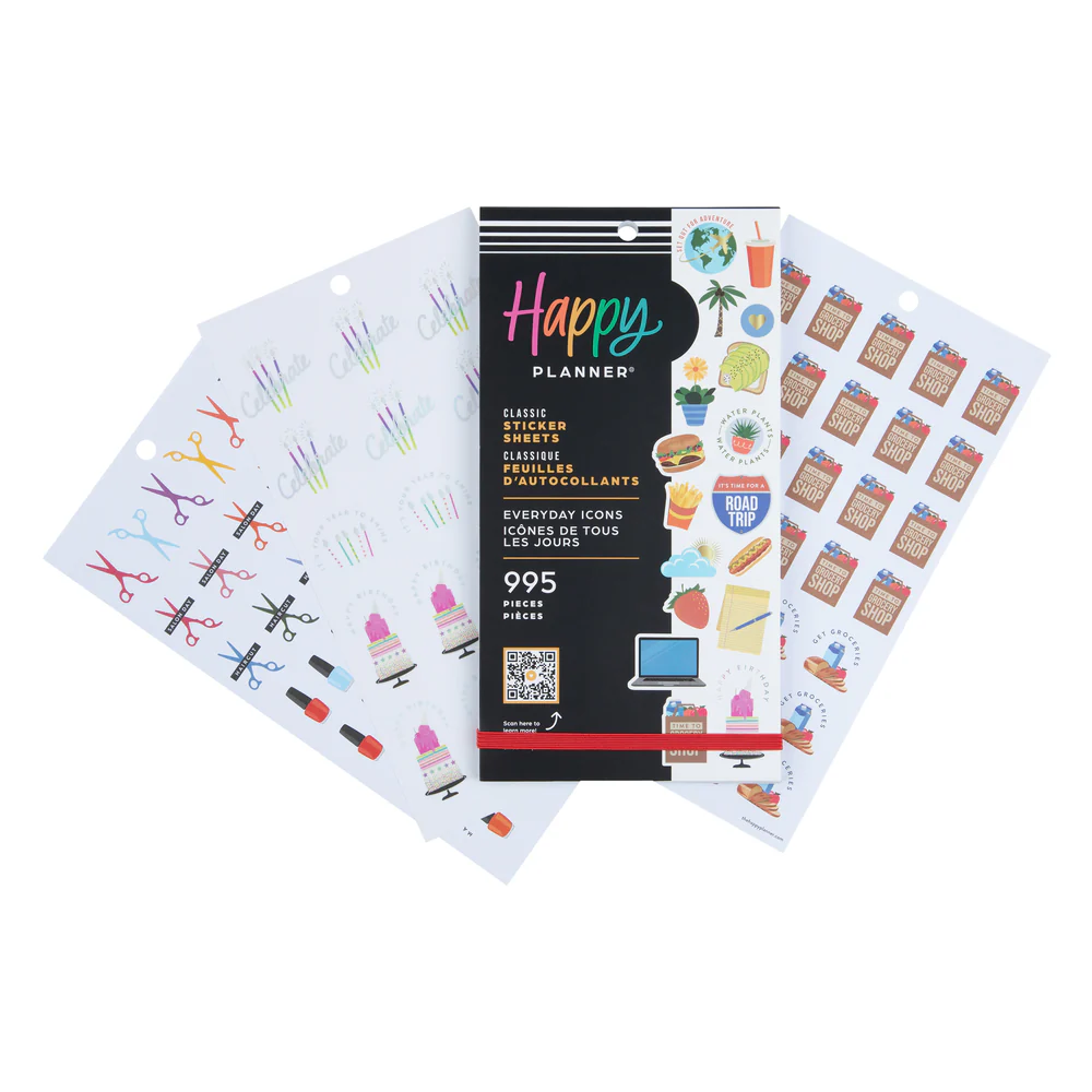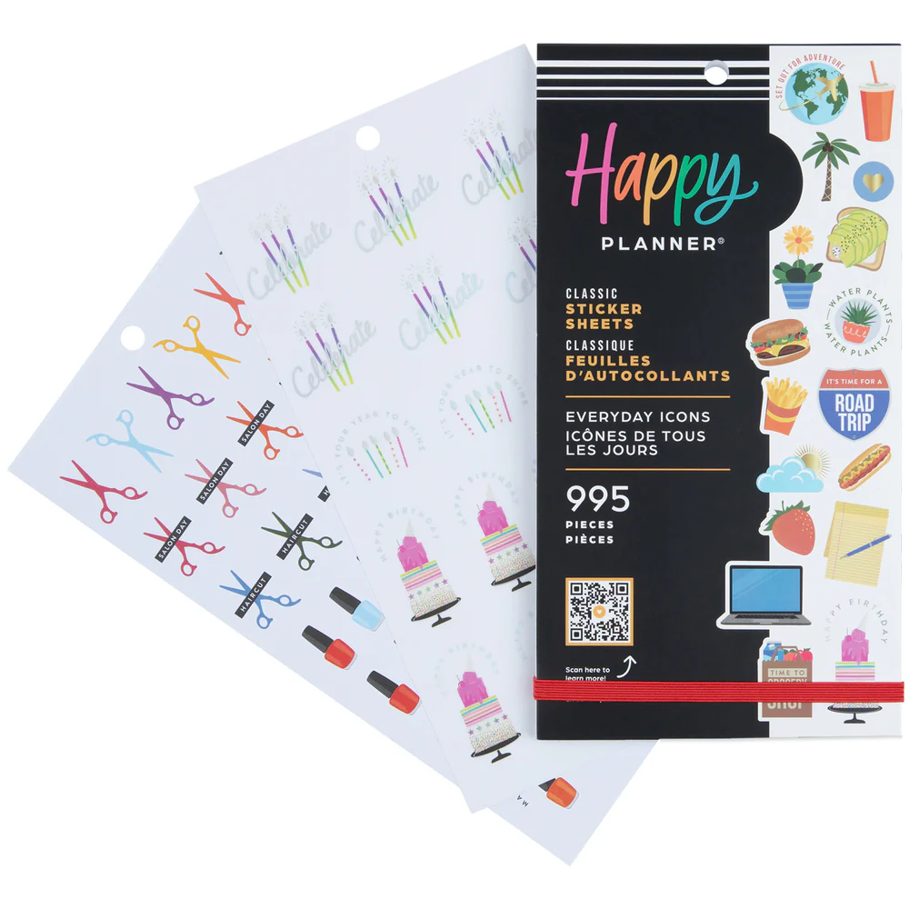 Límmiðarnir frá The Happy Planner eru fullkomin viðbót fyrir dagbókina. Það er hægt að skrifa á flesta límmiðana en það gerir skipulagið ennþá skemmtilegra.