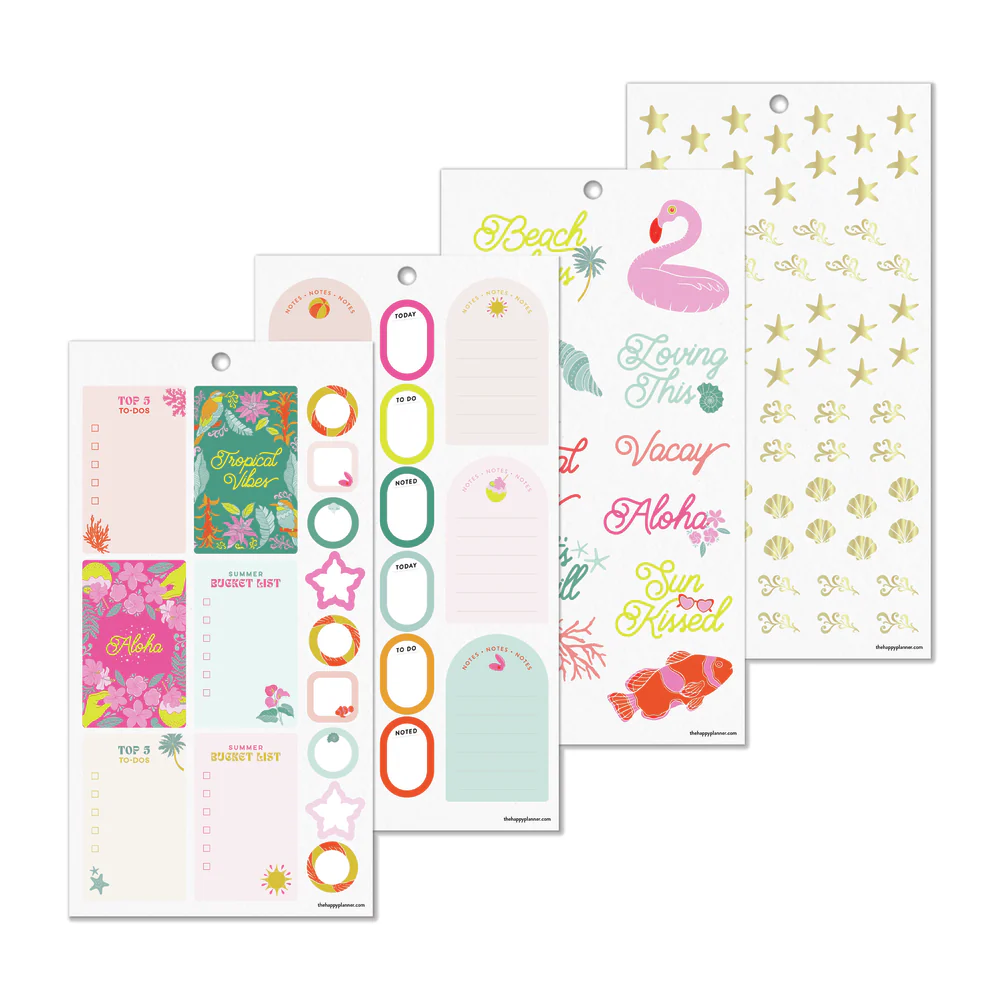 Límmiðarnir frá The Happy Planner eru fullkomin viðbót fyrir dagbókina. Það er hægt að skrifa á flesta límmiðana en það gerir skipulagið ennþá skemmtilegra.