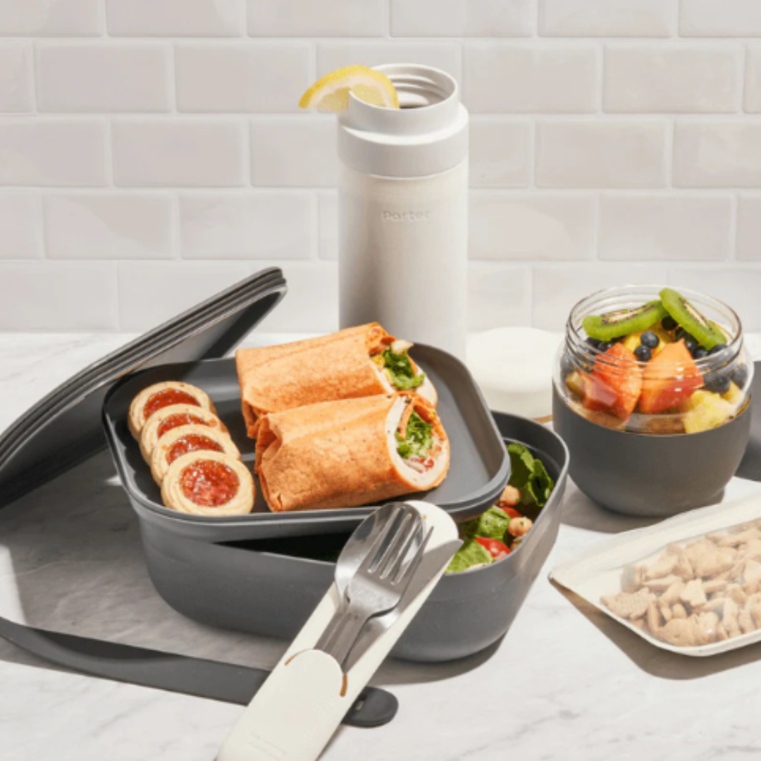 Porter nestisboxið er tilvalið fyrir hádegismatinn, nestið og matarafganga. Inn í boxinu er skilrúm sem hægt er að færa eða taka úr ásamt millihillu sem einnig er hægt að taka úr. Nestisboxið kemur með sílikón teygju til þess að loka boxinu vel.