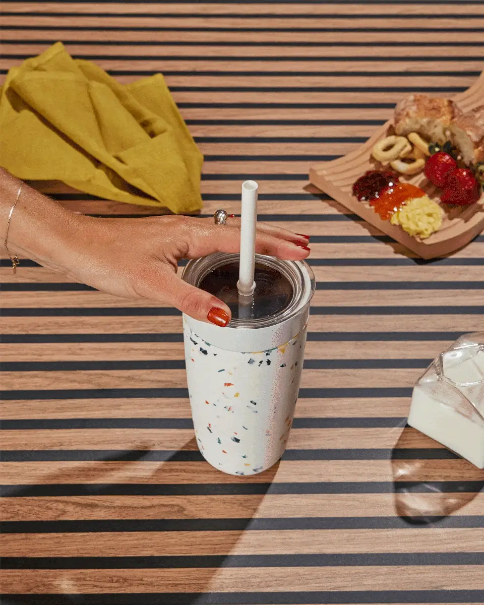Þessi frábæri og vinsæli brúsi frá Porter sem heldur heitu og köldu er hannaður með þægindi, heima eða á ferðinni í huga. Brúsinn er úr ryðfríu stáli með keramikhúðun sem tryggir að vökvi komist aldrei í snertingu við málm og skilur ekki eftir málmbragð. Tvöfalldur, lofftæmdur kjarni heldur drykkjum heitum í allt að 12 klst. og köldu í 24 klst. Brúsinn er svo klæddur silkimjúku silikoni sem veitir gott og þækilegt grip. Meðfylgjandi er kaffilok. Frábær fyrir fólk á ferðinni. Hjá Heima & Skipulag fæst einnig lok og plaströr sem er fullkomið fyrir boost og smoothie.